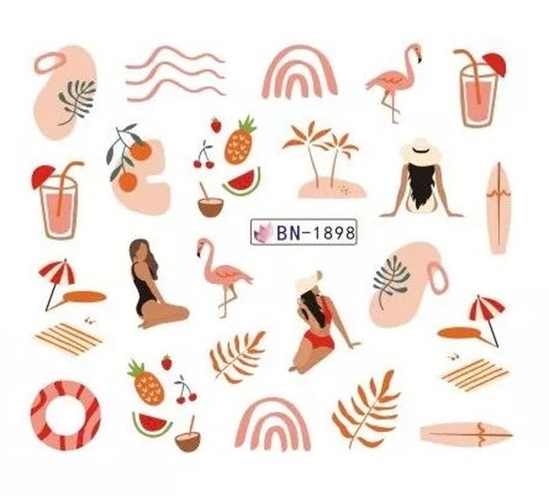 Красивые Летние и Яркие слайдеры украсят и дополнят любой маникюр. Клеятся очень хорошо, не торчат. Держаться долго.