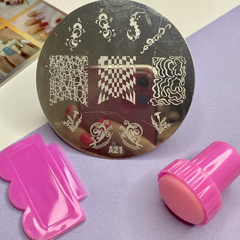 Набор для стемпинга Силиконовый штамп, трафарет, скребок ☝️Трафарет в защитной пленке! Царапины пленки на фото! Все фото реального товара сделаны лично мной!) #штамп #силеконовыйштамп #набрдлястэмпинга