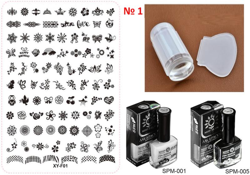 Этот товар на сайте компании Nail Dekor. Набор для стемпинга № 1. Используется для создания рисунков на весь ноготь. 1. Штампик является один из самых важных инструментов в технике стемпинг, его используют для перемещения рисунков с клише на ноготь; 2. Скребок применяется для удаления излишков краски с клише, он позволяет качественно одним движением очистить необходимую площадь пластиковой пластины; 3.Пластина-клише; 4.Краска-лак для стемпинга, черная+белая; Способ применения: - нанесите небольшое количество лака для стемпинга на пластину; - с помощью скребка уберите лишнюю краску с диска-клише; - придавите штамп к рисунку и перенесите его на ноготок; - после использования очистите силиконовую подушечку с помощью липкой ленты. ### ## Важно: чтобы избежать потери прозрачности и помутнения силиконовой подушечки, очищать штамп следует скотчем, а не ацетоном.