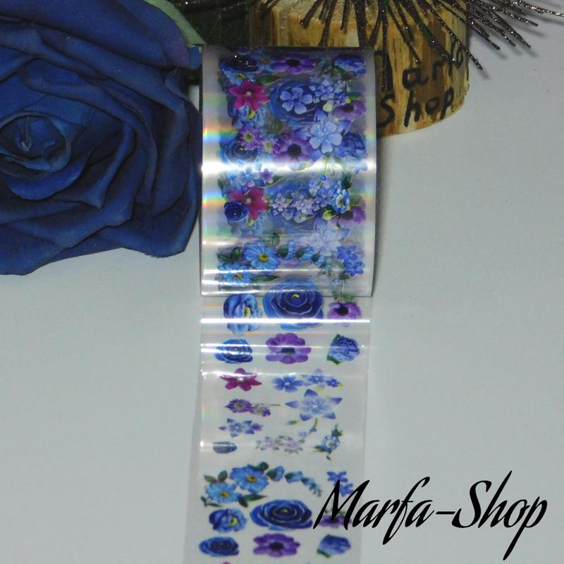 100 см. фольга для ногтей синие цветы, тип 2-2, цветочная фольга для ногтей 1 метр