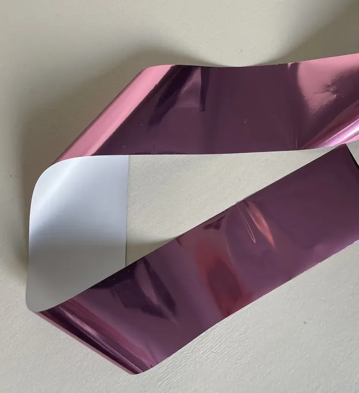 Перекладна фольга для нігтів використовується для лиття. Також за допомогою даної фольги можна робити техніку кракелюр. Довжина 1 м, ширина 4-7 см. Понад 60 різновидів. Є опт. Після нанесення і сушіння 2 шару гель-лаку не видаляти дисперсійний шар, який стане клеючою основою, прикладіть до нігтьової пластини фольгу для манікюру матовою стороною до покриття і розрівняйте її по всій поверхні за допомогою пушера, різко відірвіть декор від нігтя, внаслідок чого колір та візерунок відобразиться на його поверхні. Потім нанести фінішний топ та висушити в лампі.