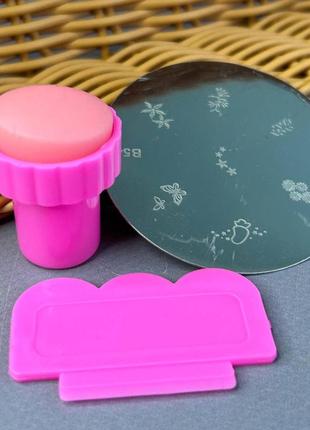 Набор для стемпинга розовыйНабор стемпинга – идеальный вариант для тех, кто хочет создать яркий и неординарный маникюр в домашних условиях. Этот набор состоит из специального диска и оттиска (стемпа), позволяющего нанести разные рисунки на ногти.Цена указана за 1 шт.