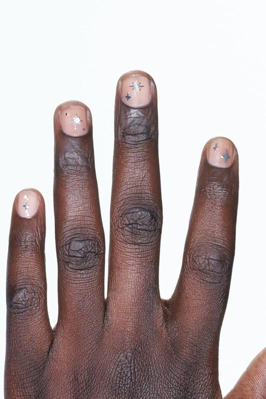 Слайдери на нігті у формі зірки золотистого та сріблястого кольору.