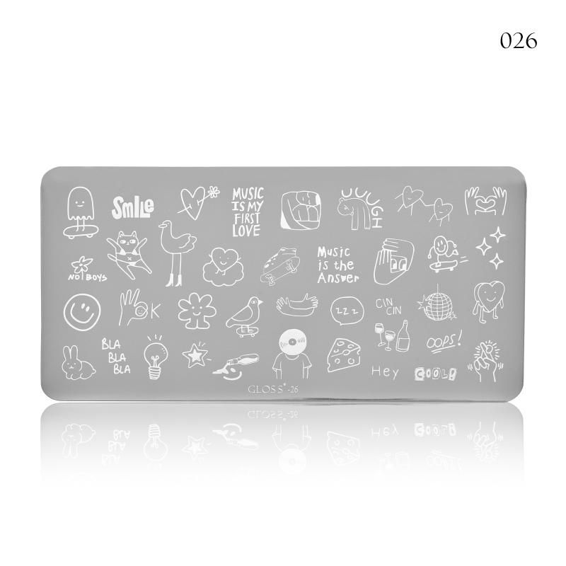 Пластина для стемпинга GLOSS Company 26 – это идеальный инструмент для создания разнообразных дизайнов на ногтях. Четкая гравировка позволяет наносить рисунок максимально точно, ведь благодаря идеальному прорези лак добирается до всех уголков пластины. Как выполнять дизайн с помощью пластины: 1. Убедитесь, что пластина чистая и без остатков лака. Можно очистить жидкостью для снятия лака или клинсером. 2. Нанесите лак для стемпинга GLOSS Company на желаемый рисунок. 3. Остатки краски следует убрать специальным скребком, держа его под углом. 4. Быстро произведите перекат штампом, чтобы перенести дизайн на штамп. 5. Сделайте перекат штампа на ноготь, чтобы перенести дизайн. 6. Обязательно! Наносим топовое покрытие и просушиваем в LED-лампе, чтобы зафиксировать результат. 7. Удаляем остатки лака для стемпинга с кожи средством для снятия лака или клинсером. Уход за пластиной: - После использования пластину следует очистить от лака жидкостью для снятия лака или клинсером. - Храните пластину в сухом месте, чтобы избежать коррозии. Используйте пластины для стемпинга вместе со штампом GLOSS Company и лаком для стемпинга GLOSS Company, чтобы получить наилучший результат. Размер пластины: 6х12 см
