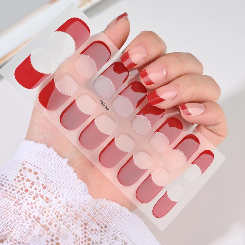 Гелевые наклейки на ногти твердеющие в уф лампе nk-fsz-003 красный 16 шт (a9522)