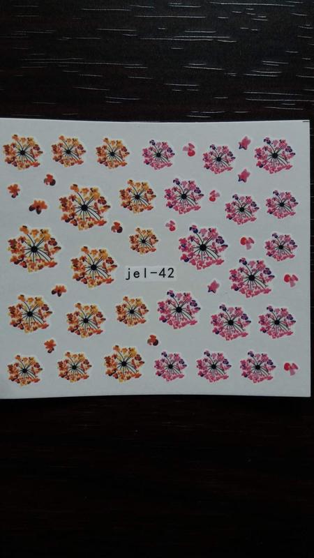 Водные наклейки для ногтей jel-42. Благодаря огромному ассортименту дизайнов каждая девушка может подобрать что- то для себя. Чтобы нанести на ногти наклейки своими руками, вам потребуется лишь минимальный набор знаний и немного ловкости. Переводные наклейки-слайдеры представляют собой тонкую пленку, которая обычно фиксируется на белой или цветной бумажной подложке. Закрепляется она на поверхности ногтей после намачивания в воде. Сама пленка чаще всего полупрозрачная и подходит для частичного декорирования или полного покрытия ногтевой пластины. В зависимости от того, какой лак будет использован вами в качестве основы и закрепителя, будет определена та или иная технология нанесения наклейки. Инструкция по применению: 1)Обезжирить поверхность натуральных ногтей или накрасить лак. 2)Снимите защитную пленку. 3)Вырезать понравившуюся наклейку. 4)Поместить на 10-15секунд в воду. 5)Перенести наклейку с основы на ноготь и аккуратно прижать. 6)Нанести верхнее покрытие (прозрачный лак).