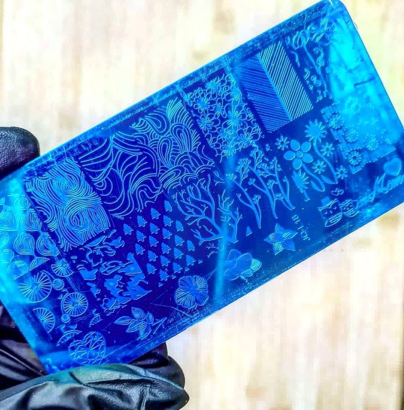 Металлическая пластина для стемпинга в защитной пленке от царапин (перед использованием синюю пленку нужно снять!) Есть много вариантов пластин,с разными рисунками. Глубокая гравировка Размеры 12*6 см