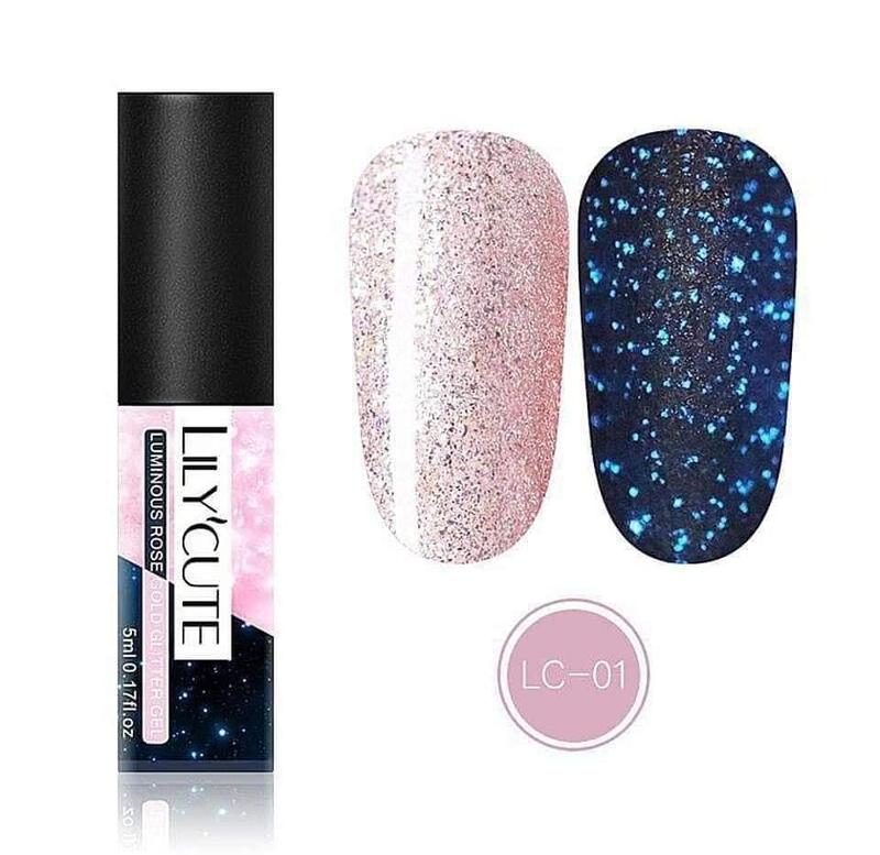 Гель-лак LILY’CUTE кошачий глаз. Обьем 5 мл. Средняя консистенция. Обьема флакона хватает на 5 полноценных покрытий в 2 тонких слоя. Артикул LC01 (в бежево-розовой основе Гелевые частицы, которые светятся в темноте)