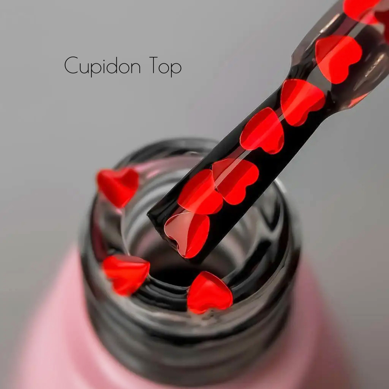 Cupidon Top – это топ без липкого слоя для гель-лака с нежными красными сердечками. Он добавляет маникюру романтичности, идеально подходит для создания праздничного дизайна или ярких акцентов на ногтях. Топ легко наносится, обеспечивает гладкое покрытие и сохраняет сияние на длительное время. Преимущества топов Toki Toki: Качество – это основа для бренда, ведь важно, чтобы твои клиенты вернулись к тебе, а ты – к нам; Разнообразие - палитра регулярно обновляется всеми наиболее востребованными новинками. Технология нанесения не отличается от любого топа: 1. Подготовь ногтевую пластину, немного забаф, нанеси обезжириватель и при необходимости ультрабонд. 2. Нанеси базу, просуши ее в лампе, на базу нанеси цвет в 1-2 слоя, каждый из которых, конечно, тоже просуши. Зверху нанести топом и снова просушить в лампе. Если используешь УФ лампу старого образца суши 2 минуты каждый слой, если LED лампа - достаточно 30 секунд