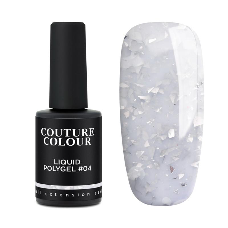 Жидкий полигель couture colour liquid polygel 04 (молочный с серебристой поталью), 9ml