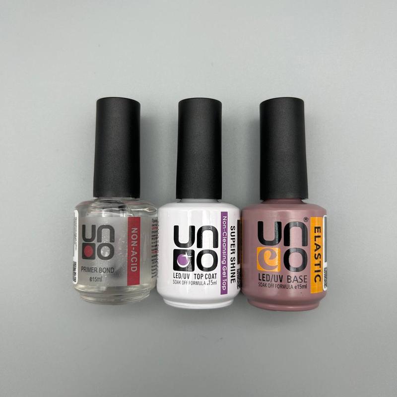 Компания «UNO» представляет современную линию косметики для маникюра. Преимущества: стойкость покрытия более 20 дней, яркий блеск, не стягивается, не трескается, не скалывается, сушится в LED/UV лампах. В комлект набора 3в1 входит: - топ (Без Липкого слоя) UNO Super Shine 15 мл - 1 шт; - база UNO Elastic 15 мл - 1 шт; - праймер (Ультрабонд) UNO 15 мл - 1 шт.
