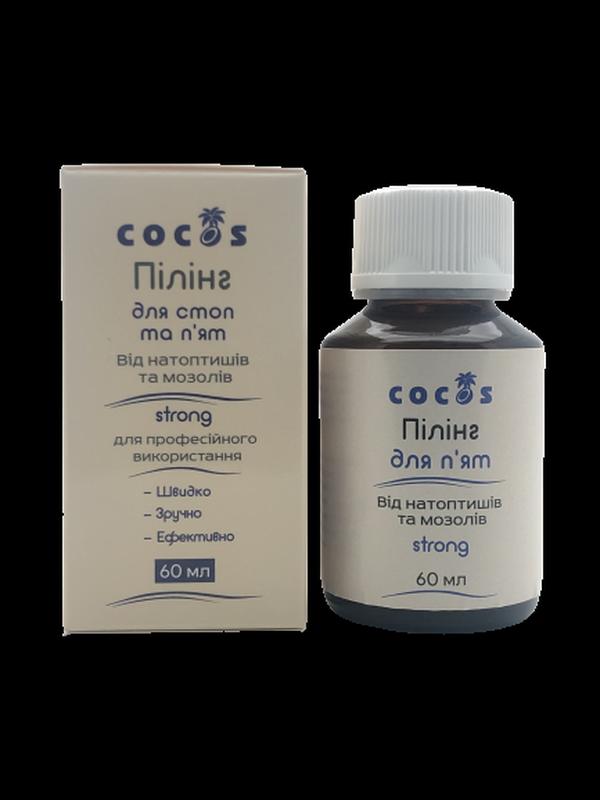 При переході на відкрите взуття (шльопки, босоніжки та ін.) шкіра ступнів стає відкритою зовнішньому середовищу, і тому починає посилено втрачати вологу. У результаті роговий шар стає нефізіологічно сухим (вологи менше 10%), що призводить до порушення роботи ферментів шкіри і відбувається підвищена кератинізація і накопичення ороговілих мас у вигляді потовщеного рогового шару. Якщо своєчасно не вжити заходів щодо зменшення товщини рогового шару на ступнях, це з часом призводить до утворення мозолів/натоптишів, а з часом і до тріщин на п'ятах. На ранніх стадіях ще можна вирішити проблему за допомогою кремів і пилки, але коли ситуація запущена, то потрібні більш ефективні засоби для зменшення товщини мозолистих облямівок і натоптишів, щоб запобігти появі тріщин і привести п'яти в нормальний стан -- це коли шкіра ніжна і м'яка, без мозолів і натоптишів, і для цього існує пілінг для п'ят, який призначений для швидкого видалення кератинових мас, які багато хто називає натоптишами. Достатньо 1-2 процедур для того, щоб повернути своїм п'ятам стан як у немовляти. Пілінг п'ят у домашніх умовах -- особливості Даний засіб діє шляхом розчинення кератинізованої (омертвілої) частини епідермісу п'ят. Цей продукт для п'ят -- лужний пілінг, який розчиняє ороговілий кератин на ступнях ніг. Strong -- означає сильний, або посилений. Це більш концентрована версія пілінгу п'ят, і призначена для: 1. Дуже запущених стоп з великою товщиною натоптишів; 2. Для професійного використання майстрами педикюру. Так як це продукт лужний, він вимагає для ефективної дії гідратації мозолистої частини шкіри. Тому засіб ефективніший після попереднього розпарювання ніг. Пілінг п'ят у домашніх умовах -- спосіб використання Це дуже проста і коротка за тривалістю процедура. Радимо дотримуватися наших рекомендацій для того, щоб процедура пілінгу п'ят пройшла ефективно та безпечно: 1. Перед початком використання лужного пілінгу для п'ят, необхідно переконатися у відсутності пошкоджень шкіри та відкритих ранок. За їх наявності проводити пілінг категорично заборонено; 2. Для більш ефективної дії необхідно розпарити ноги, наприклад, у ванночці для ніг, протягом 10-15 хвилин; 3. Чим краще ноги розпарені (гідратований роговий шар ступнів), тим менший час треба тримати пілінг для п'ят і тим більший шар натоптишів він розчинить; 4. Витерти насухо ступні; 5. Уникаючи ділянок з живою шкірою, нанести засіб на всю область натоптишів. Там, де ороговіння сильніше, засобу наносимо більше; 6. Для більшої ефективності можна надіти на ступні целофанові кульки. Це необхідно для того, щоб зберегти вологу, тому що в сухому вигляді пілінг не працює. Але можна і без пакетів, в цьому випадку глибина дії буде менше; 7. Експозиція від 3-х до 15-ти хв. У салонах педикюру, під наглядом майстра час може бути більшим. В домашніх умовах ми рекомендуємо краще провести два сеанси пілінгу, ніж самостійно витримувати експозицію більше 15 хвилин; 8. Папірним рушником, або серветкою витерти залишки засобу; 9. Очистити зону пілінгу під проточною водою, або в тазу, за допомогою жорсткої щітки по типу одежної. Зчищати до тих пір, поки слизький розчинений кератин не змиється повністю; 10. Обполоснути ступні в проточній теплій воді і витерти насухо; 11. Обов'язково нанести щільний крем для рук, або спеціальний крем для догляду за ступнями. У біль