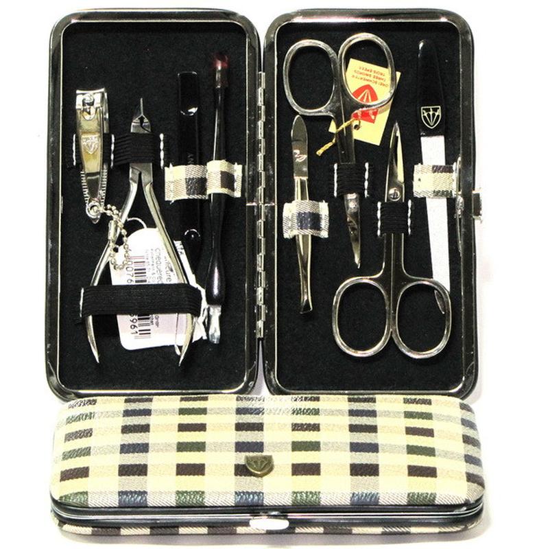 Характеристика набора Материал - Инструментальная сталь „Drei Schwerter" Футляр - Кожзам Цвет - Клетка Комплектация набора Кусачки - 1 шт. Ножницы - 2 шт. Пинцет - 1 шт. Щипцы - 1 шт. Пилка - 1 шт. Лопатки - 2 шт.