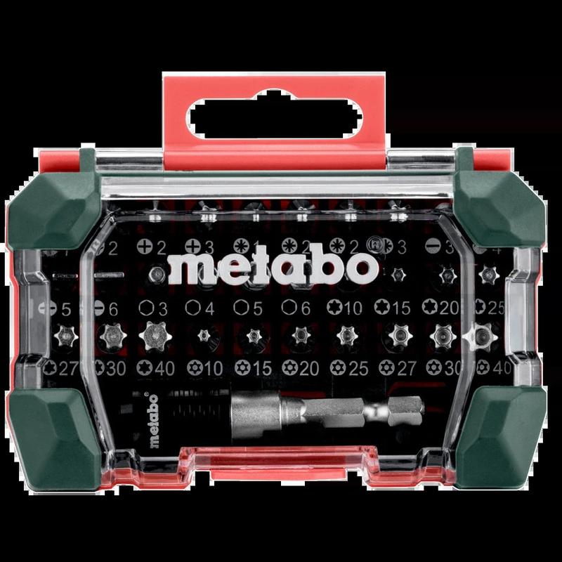 Складається з: iнструментальні насадки S 2, L = 25 мм. (30 шт.) PH 1 x 1, PH 2 x 2, PH 3 x 1, PZ 1 x 1, PZ 2 x 2, PZ 3 x 1, SL 3, SL 4, SL 5, SL 6. по 1 шт.: H 3, H 4, H 5, H 6, T 10, T 15, T 20, T 25, T 27, T 30, T 40. для гвинтів Torx-Tamper: по 1 x T 10, T 15, T 20, T 25, T 27, T 30, T 40. 1x адаптер, 1x магнітний швидкозмінний тримач насадок 65 мм. Інструментальні насадки з хромованадієвої сталі (якість S2); насадки з умовним фарбуванням: для швидкого та простого знаходження потрібної насадки; магнітний швидкозмінний перехідник; з перехідником для змінних голівок торцевого ключа (перехідник для торцевих голівок); високоякісний міцний футляр у спеціальному дизайні Metabo, висувне кріплення з отворами євростандарту.
