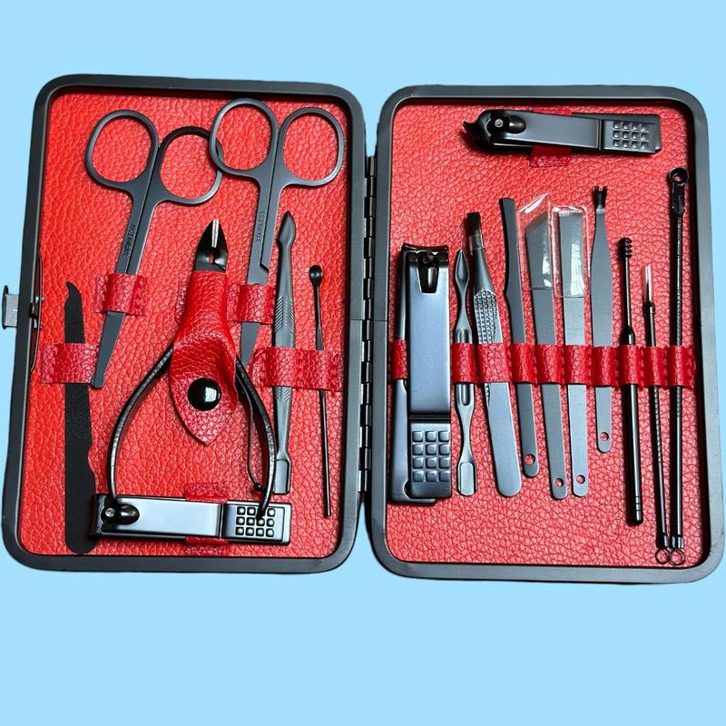 ### Дбайливий догляд за нігтями та кутикулою неможливо уявити без використання якісних інструментів. Цей набір містить усі необхідні інструменти, які виготовлені із сталі та добре заточені. А стильний футляр зі шкірозамінника забезпечує зручне зберігання. У наборі є - Ножиці манікюрні - 2 шт. - Кусачки - 4 шт - Пінцет - 1 шт - Пилка - 1 шт - Лопатки - 7 шт - Інструмент для видалення вугрів - 3 шт Матеріал: Нержавіюча сталь Розмір: 15,5×10,3×2,3 см