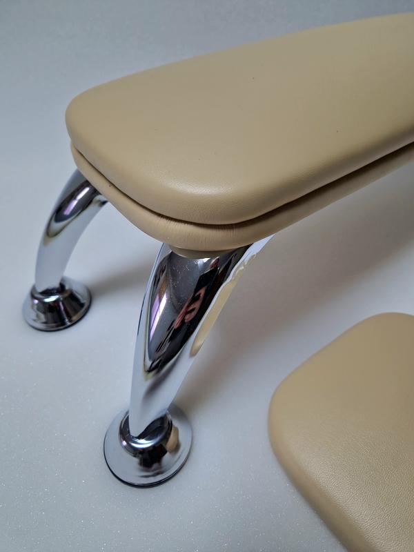 ця підставка є незамінним аксесуаром, вона використовується під час виконання апаратного або комбі-манікюру, зняття покриття та інших процедур. Обтягнута якісною еко-шкірою, яка дуже приємна на дотик. Колір на вибір, виготовимо будь-який Клієнт може зручно розташувати свою руку на підставці, що дозволить уникнути затікання руки або неприємних відчуттів у ліктьовому суглобі. Зручніше працювати стає і майстру, зменшується навантаження на спину. Ціна окремо за 1 шт. з набору: Підлокітник 15/15 см для майстра 200грн Підставка для клієнта 800 грн Підставка має хромовані ніжки. Габаритні розміри: - Довжина подушки - 39 см - ширина подушки – 15 см - Товщина м'якого шару - 3 см - Висота ніжок - 12 см - Довжина з ніжками 53 см ціна комплекту 1000