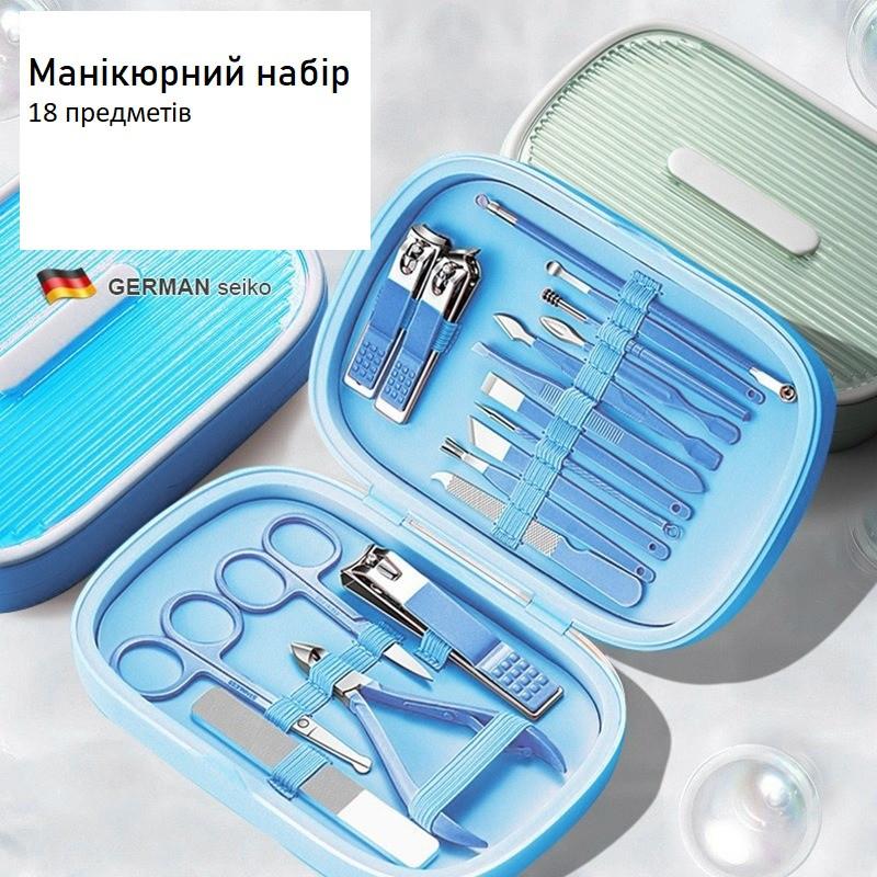Набор маникюрный из 18 предметов в футляре. набор для маникюра и педикюра в чехле (голубой...