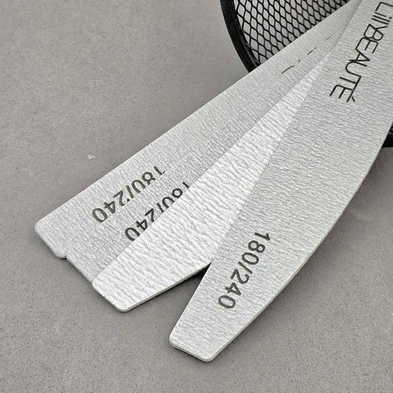 Пилка-дуга для ногтей Lilly Beaute, 180/240 грит, 50 шт/уп. Пилка-дуга для ногтей Lilly Beaute является двусторонней - каждая сторона имеет свою абразивность. Это позволяет использовать ее для различных видов работ. Размер инструмента: 177 х 27 мм Абразивность пилочки измеряется в гритах. Чем меньше количество грит, тем жестче инструмент.