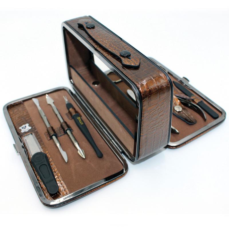 Набор для маникюра 10 предметов футляр чемоданчик Маникюрный набор Zinger профессиональный 10 предметов Зингер MS-1203-801 BP #350 - отличный подарок для женщины, футляр из качественной натуральной кожи (футляр произведен в Южной Корее). Футляр выполнен в форме небольшого чемоданчика 17,5 х 9,5 х 6 см. открывающийся в обе стороны. Внутри хранится качественный маникюрный инструмент выполненный из специальной инструментальной стали, инструмент изготовлен в Италии, заточка доведена вручную, что позволит Вам сразу использовать инструмент. С средней части футляра удобно хранить лаки или другую косметику Приятным дополнением будет фирменная коробка с логотипом Zinger. В набор для маникюра Zinger входят такие инструменты: - Кутикульные ножницы; - Ногтевые ножницы; - Кутикульные кусачки; - Пилка; - Пинцет; - Триммер; - Палочка для кутикулы; - Шабер односторонний; - Шабер двусторонний. Маникюрный набор Zinger профессиональный 10 предметов Зингер MS-1203-801 BP #350 Преимущества: - Невероятный футляр из натуральной кожи - Острый и долговечный инструмент - Ручная заточка - Лучший подарок дорогому человеку - Товар В НАЛИЧИИ на НАШЕМ складе - Покупку можно оплатить при получении - Быстрая отправка Страна происхождения бренда Zinger - Германия Инструмент для маникюра произведен в Италии Футляр произведен в Южной Корее