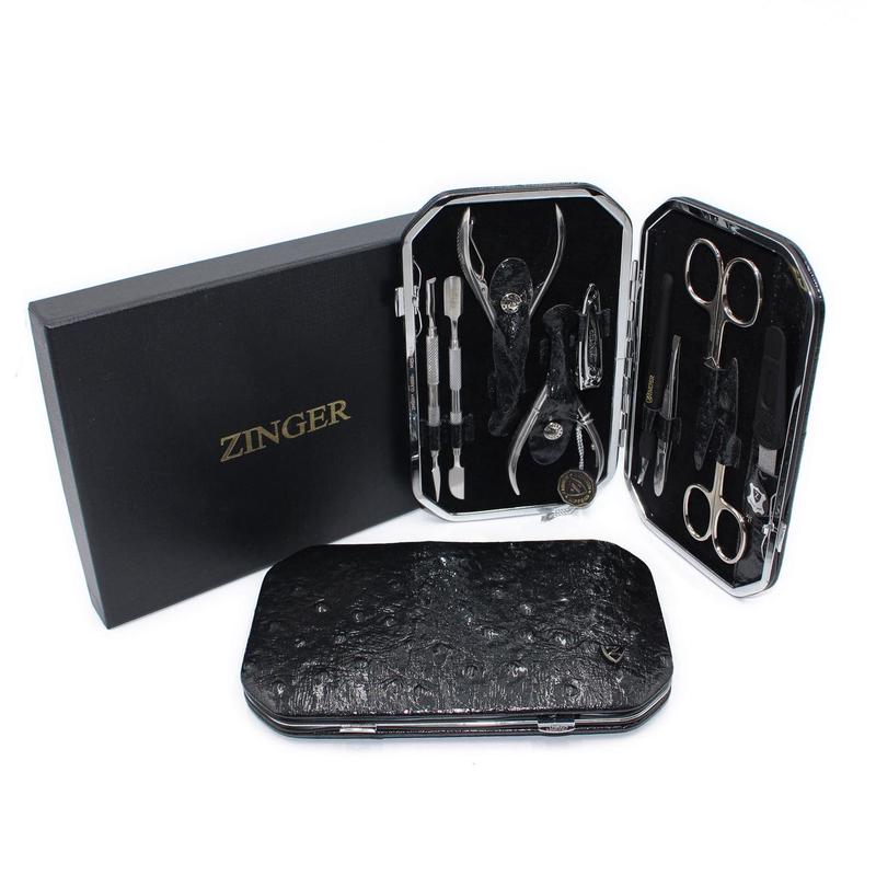 Маникюрный набор zinger 10 предметов футляр кожа черного цвета