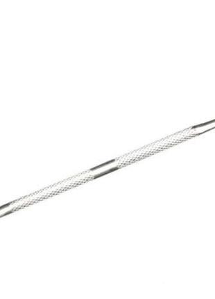 Лопатка для маникюра (пушер, шабер). Размер: 13,5см. Все наши товары Вы можете посмотреть на нашем сайте: ******************** Пушер для ногтей представляет собой маникюрный инструмент, который применяется для очищения ногтя. Он двусторонний. С одного конца находится лопаточка, позволяющая отодвинуть кутикулу. Форма ее рабочей поверхности подогнана под форму ногтя. С другого конца пушера для кутикулы расположен топорик (изогнутая под соответствующим углом, заточенная пика специальной формы). Эта сторона помогает избавиться от птеригия, тщательно очистив боковые стороны и ногтевое ложе. И лопаточка, и топорик подточены так, чтобы вы не смогли ими порезаться.