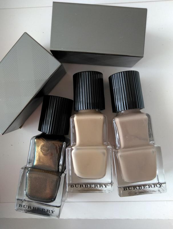лаки Burberry номера указаны слева- направо 202 Metallic Khaki - БРОНЬ 108 Honey 105 Mink цена указана за единицу