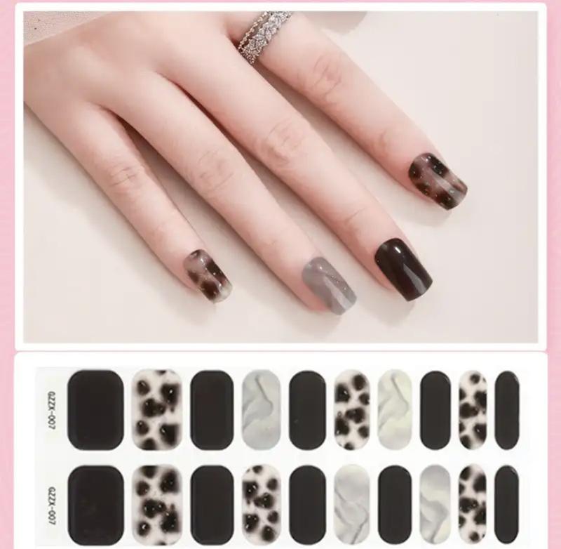Эти наклейки клеятся и фиксируются уф лампой, остаток отрезается и подпиливается, в наборе 20 штук, подойдет по размеру абсолютно любому, также в продаже есть маленькие переносимые на аккамуляторе уф лампы, больше цветов на странице