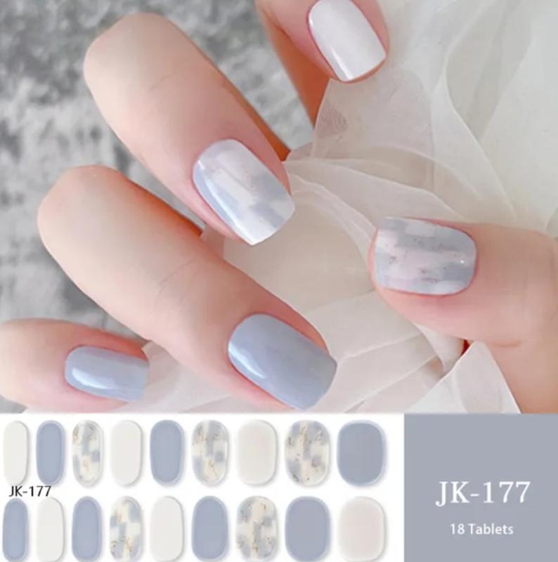 Гелевые наклейки для маникюра, которые сушится под УФ лампой. Способ нанесения: протереть ноготь спиртом или дигедратором, подобрать наклейку по размеру ногтя, снять с пластины с помощью апельсиновой палочки и прикрепить к ногтям. Подсушить в лампе. Обрезать лишнее и подпилить пилочкой по форме ногтя. В набор входит: - гелевые наклейки - апельсиновая палочка - пилочка.