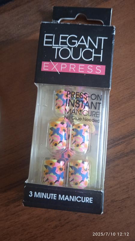 Набор накладных ногтей Elegant Touch Express 3 Minute Manicure. Этот продукт предлагает быстрый маникюр за 3 минуты. Набор не требует клея, поскольку ногти предварительно покрыты клеевым слоем. Комплект включает 24 ногти 10 разных размеров, салфетку для подготовки и пилочку для ногтей. Ногти изготовлены по технологии УФ-геля, что делает их устойчивыми к сколам и царапинам.