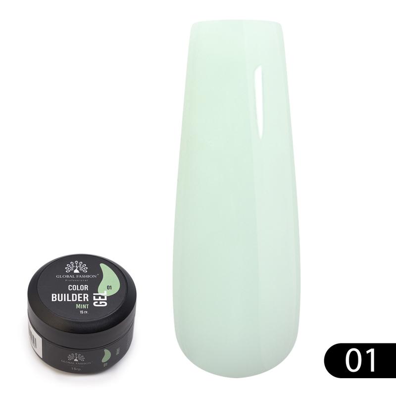 Гель для наращивания и моделирования ногтей global fashion color builder gel 01 mint, 15 г