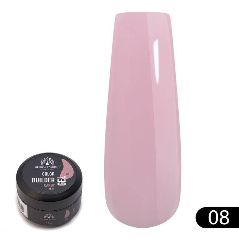 Гель для наращивания и моделирования ногтей global fashion color builder gel 08 candy, 15...