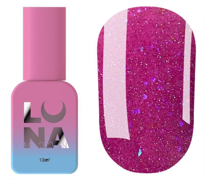Lurex Base №9 - это камуфлирующая светоотражающая база. При включении вспышки она начинает сиять и смотрится магически, ведь содержит в своей консистенции блестки. Особенности: - Слабокислотная pH 5-6. - Эластичная и гибкая. - Высокий уровень перекрытия натурального ногтя из-за высокой пигментации. - Может давать минимальную усадку в процессе ношения из-за того, что она упругая. - Консистенция средняя, самовыравнивающаяся. - Обеспечивает носибельность без отслойки 3-4 недели. - Обладает нейтральным запахом. - Исключает сильный нагрев ногтевой пластины в процессе полимеризации, поэтому не вызывает жжения в лампе. - Гипоаллергенная. - Хорошо снимается как спиливанием, так и жидкостью. - Не течет и быстро самовыравниваются. - Нуждается в подкладках с Rubber base. - Не подходит для выравнивания длинных ногтей без предварительного укрепления. - Время сушки в лампе 120 секунд. - Можно дополнительно разогревать, чтобы сделать консистенцию еще реже. - Мощность лампы для просушки - 48 W (это должна быть только оригинальная лампа). - Основное правило при выравнивании - толщина должна быть 1-1,5 мм на торце. - Тиксотропная - становится редкой в работе при движениях кисточки. Метод нанесения: 1. Снятие. 2. Форму ногтя не опыляем. Или оставляем запасных 2 мм длины, которые опыляем и уберем после выравнивания. 3. Пилой 220 грит опыляем без сильного нажатия ноготь сверху, приподнимая чешуйки ногтевой пластины или же используем баф 100 грит. 4. Маникюр. 5. Если вы работаете ремуверами, после их использования нужно промыть руки водой с мылом. 6. Обезжиривание ногтя. Нужно сделать два подхода. Используем 4 салфетки. Одна салфетка на 5 пальцев. Первый подход - протираем поверхность ногтя. Второй подход - берем апельсиновую палочку, одеваем салфетку и протираем все в зоне кутикулы и в пазухах. 7. Дегидратор (не обязательно) 8. Праймер используем по желанию. Но если база для подложки обладает достаточной кислотностью, то праймер не нужен. 9. Подкладка из Rubber base Lunamoon. Лучше всего наносить плоской кистью для геля. Движения должны быть втираются. Важно прорисовать все пазухи ногтя. Сушить 30 секунд. 10. Стереть липкость. 11. Выравнивание. Высушить в лампе 120 секунд. 12. Опыль формы после выравнивания. Это нужно для того, чтобы на торце образовалась толщина, которая будет держать свободный край. 13. После опыления стираем липкость. 14. Нанести топ и сушить 120 секунд. После просушки ничем не протирать, ведь может потеряться блеск.