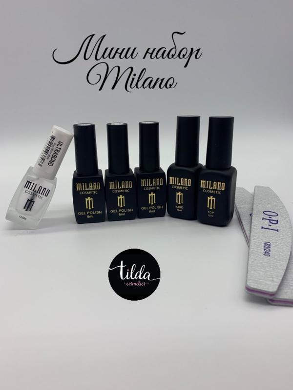 Мини набор Milano 🔥Цена набора 650 грн✅ 🌺В набор входит👇 👉3 гель лака Milano(цвета на выбор) 👉Топ и База Milano объём 12 мл 👉2 пилки Opi на выбор 👉Ультрабонд Milano объём 10 мл