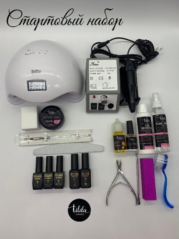 Стартовий набір для майстра 🔥Ціна набору 3000 грн✅ 🌺У набір входить👇 👉3 гель лаки Milano (кольори на вибір) 👉Топ та База Milano об'єм 12 мл 👉Олія для кутикули Tilda Cosmetics 30 мл 👉Праймер безкислотний Tilda Cosmetics об'єм 15 мл 👉Пилка 1 шт 👉Лампа Sun 5 48W 👉Фрезер Lina Mercedes 2000 👉Серветки безворсові 100 штук 👉Кісточка для гелю 👉кусачки Zauber 👉Пушер 👉Щітка кругла 👉Баф 👉Рідина для зняття гель лаку Tilda Cosmetics 100 мл 👉Знежирювач Tilda Cosmetics 100 мл 👉Гель для нарощування Tilda Cosmetics 30 мл (на вибір)