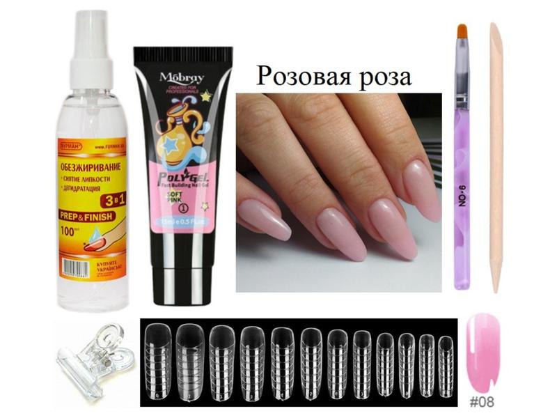 Полігель стартовий набір акригель для нарощування нігтів манікюру зажим форми гель лак баз...