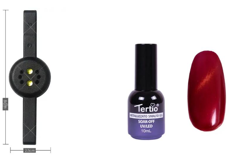 Набор для манікюру Котяче око ( USB лампа + гель лак Котяче око Tertio 009) Набір для манікюру Котяче око стане помічником при відключенні світла, саме завдяки наявності USB лампи. А також зробить сеанс манікюру більш прогнозуємим. Лак 009 Tertio створений для романтичного та грайливого настрою. Ще й ефект Котяче око додає загадковості. Особливо, коли стає темно, він поблискує таємничо та розкуто. Тільки для вибагливих леді! До набор входить: 1. USB лампа для манікюру + Магніт для гель лаку Котяче Око (від USB) 2. Гель-лак Котяче Око 009 LED лампа працює від USB, сушить від 30 секунд. Відмінне рішення під час відключення світла! Використовують як самостійний пристрій для сушки або як підстраховку до звичайної лампи для завершення сушки гель-лаку, якщо зникає напруга 220 в. Спеціальний мульти-магніт, який призначений для створення манікюру "Котяче око". Особливість цього розумного аксесуара в тому, що у нього працюють всі сторони, завдяки особливому розташуванню магнітиків всередині корпусу. Випробуйте його в роботі і порадуйте себе і улюблених клієнтів цікавим і оригінальним дизайном. Спосіб застосування: 1. Нанесіть базове покриття на нігтьову пластину. 2. Потім нанесіть гель лак "Котяче око". 3. Далі піднесіть мульти-магніт до нігтя і утримуйте 5-8 секунд, після чого просушити. 4. Нанесіть фінішне покриття і просушіть його. Розмір: 80х25 мм