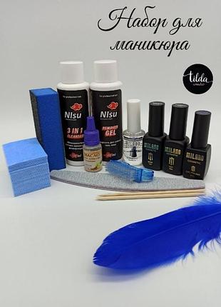Цена 735 грн. В набор входит: 1. База Milano 12 мл/база OXXI 10 мл/ база Kodi 8 мл 2. Топ Milano 12 мл/топ OXXI 10 мл/ топ Kodi 8 мл 3. Ультрабонд Milano15 мл 4. Гель-лак Milano/ OXXI/ Kodi (на выбор из обычной палитры) 5. Масло для кутикулы 12 мл 6. Remover gel Tilda Cosmetic (жидкость для снятия гель лака) 100 мл 7. Nail prep Tilda Cosmetic ( обезжириватель, удаление липкого слоя) 100 мл 8. Пилка для ногтей 1 шт 9. Баф 1 шт 10. Щетка для удаления пыли 11. Апельсиновые палочки 2 шт 12. Безворсовые салфетки 50 шт