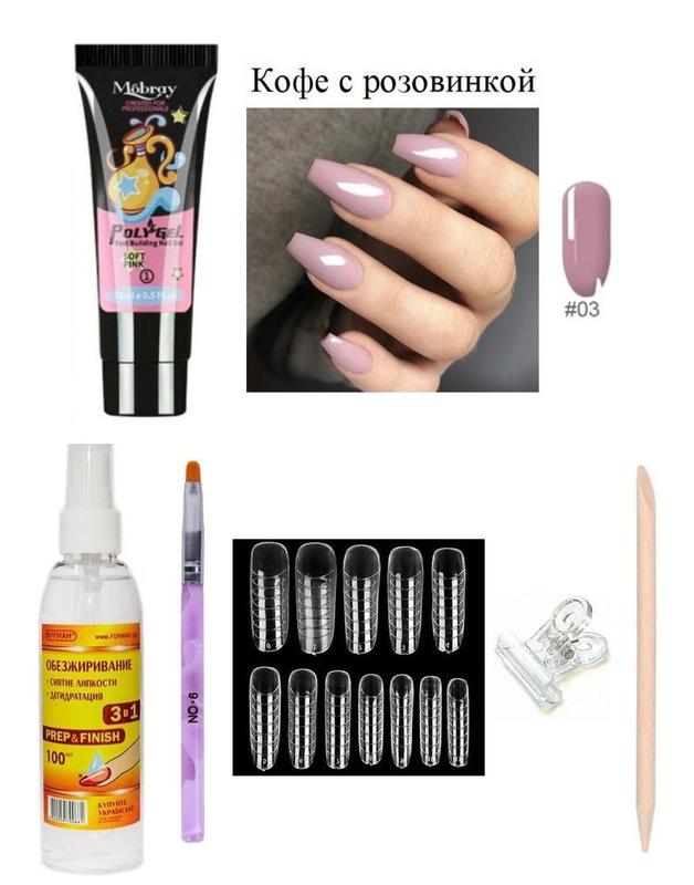 Полигель стартовый набор акригель для наращивания ногтей маникюра зажим формы гель лак баз...
