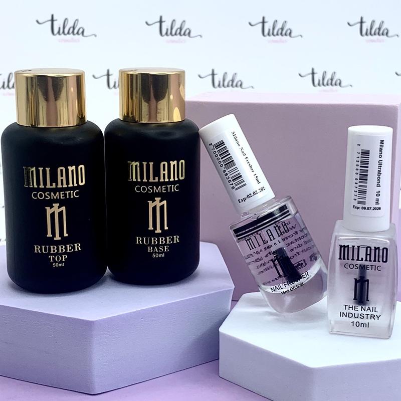 Набор Milano Цена 1135 грн В набор входит: 1. Каучукова база Milano 50 мл 2. Каучуковый топ Milano 50 мл 3. Праймер для ногтей Милано (Ultrabond) 10 мл 4. Обезжириватель для ногтей Milano (Nail Fresher) 15 мл