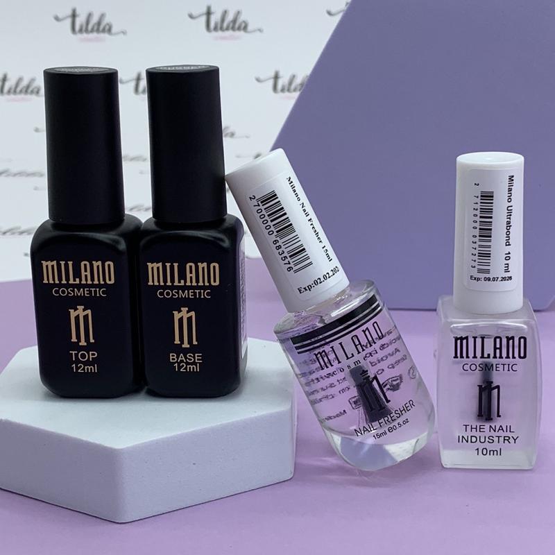 Набор Milano Цена 519 грн В набор входит: 1. Каучукова база Milano 12 мл 2. Каучуковый топ Milano 12 мл 3. Праймер для ногтей Милано (Ultrabond) 10 мл 4. Обезжириватель для ногтей Milano (Nail Fresher) 15 мл