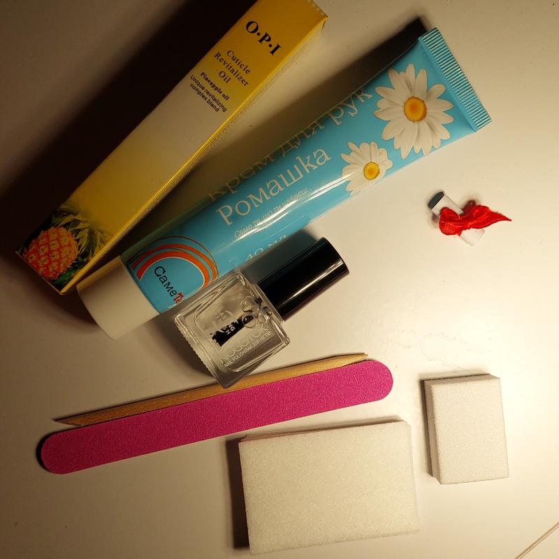 Состав: 📍Предусмотрение от мастера маникюра 📍 Крем для рук 📍 Масло для кутикули 📍Пилочка для ногтей 📍Апельсиновая палочка 📍Лак для ногтей прозрачный 📍 Безворсовые салфетки Также, многие есть разной косметики Ищите меня в инста: **********