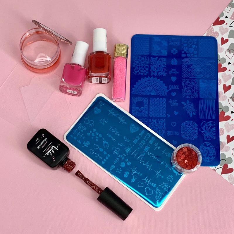 Мини набор для дизайна к Дню влюбленных♥️ №7 Цена 439 грн В набор входит: 1. Светоотражающий гель лак Tilda Cosmetics 10 мл (на выбор) 2. Лак для стемпинга 7 мл 2 шт 3. Пластина для стемпинга большая 4. Пластина для стемпинга 5. Штамп для стемпинга силиконовый 6. Декор конфетти-сердца 7. Блискітки в колбі