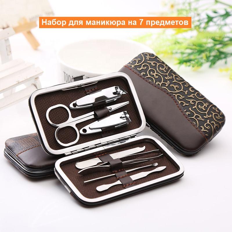 ### Стильний модний набір інструментів для маникюра VHG SS-7BN, що складається із 7 предметів, не тільки гарний, але й практичний. Виготовлений із високоякісної неіржавкої сталі та поліуретану — приємного для шкіри матеріалу. Підходить як для професійного, так і домашнього використання, у салонах краси, манікюру та педикюру тощо. ОСНОВНІ ХАРАКТЕРИСТИКИ: - матеріал: нержавіюча сталь; - розмір: 10,5 см х 6 см х 2 см; - вага: 74 г; - колір чохла: коричневий; - колір інструментів: срібний. Наш набір інструментів для догляду нігтями на пальцях рук і ніг можна використовувати в різних місцях, він безпечний у використання, довговічний і зручний на дотик. Підходить як для жінок, так і для чоловіків різних вікових категорій, включно з б'юті-блогерів, костюмерів і новачків індустрії краси. Набір інструментів містить: - ножиці манікюрні — 1 шт.; - щипці — 2 шт.; - пилка для нігтів — 1 шт.; - пінцет — 1 шт.; - ложка косметологічна — 1 шт.; - лопатки — 1 шт.; - футляр. Купуючи наш професійний набір для манікюру VHG SS-7BN на 7 предметів, Ви можете бути впевнені в якості нашого товару за прийнятну ціну. Він слугуватиме Вам довгі роки, підкреслюючи Вашу індивідуальність і неповторність. Також у разі потреби може стати стартовим майданчиком для початку власної справи в галузі індустрії краси та здоров'я за мінімальних витрат!