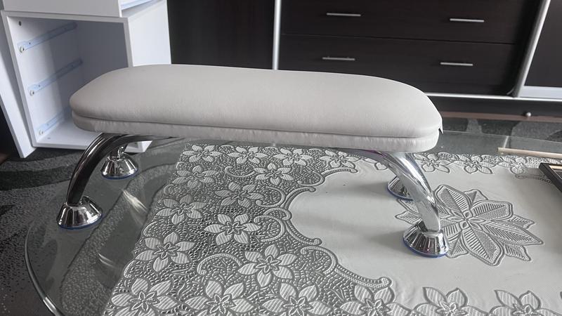 Продам подлокотник новый. Подставка изготовлена из качественной эко-кожи, ножки хромированные с силиконовыми накладками, не допускающими скольжения. Используется при выполнении аппаратного или комбинированного маникюра, позволяет удобно расположить руку клиента во избежание затекания или других неприятных ощущений в руке или локте. Мастера так же будет комфортно работать с таким подлокотником. Размеры подставки рассчитаны с учетом специфики маникюрного дела: под ней легко можно расположить УФ-лампу или LED лампу. Ножки хромированные Длина подушечки, см 41 Ширина, см 15,5 Общая высота, см 16.5 Вес, кг 1,9