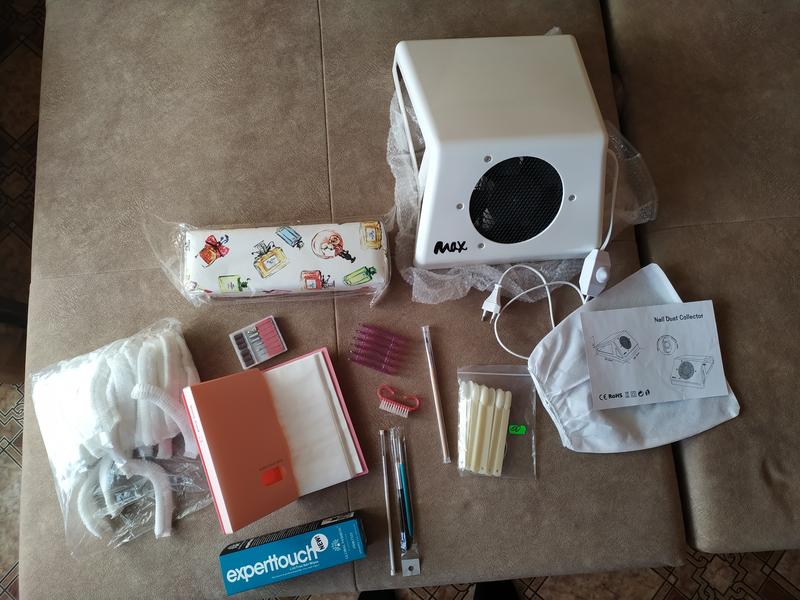 Стартовый набор для маникюра: - Вытяжка для маникюра настольная MAX ULTIMATE 4 100 Вт. - использовала до 10 раз - фрезерные назадки для педикюра - пендзлики для маникюра - щетка для удаления пыли маленькая - тепсы на кольце - безворсовые салфетки (открытая упаковка) - Альбом для хранения слайдеров 40 листов, 240 ячеек