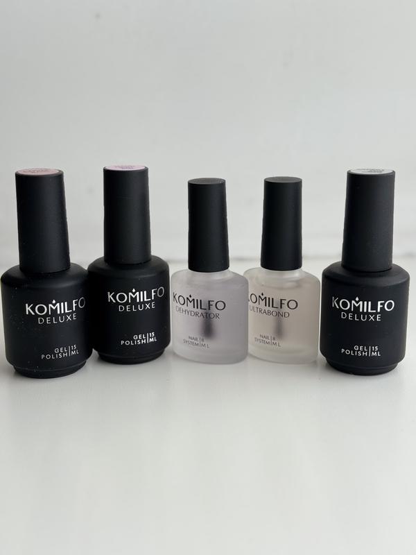 Komilfo набір для нігтів, база, база-фрегч, ультрабонд, дегідратор, топ