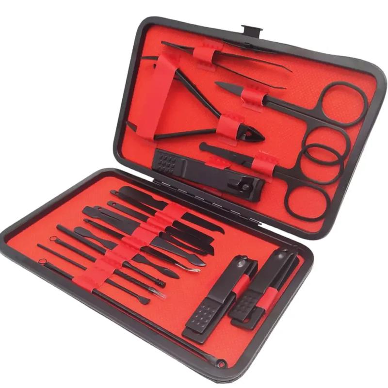 Маникюрный набор 18 предметов в футляре профессиональные инструменты для маникюра и педикюра Маникюрный набор инструментов для дома профессиональный состоит из 18 предметов, изготовленных из прочной медицинской стали. Красивые, ухоженные ноготки - обязательный элемент образа современной девушки, который свидетельствует о ее опрятности. Правильно обрабатывать ногтевую пластину удобно и приятно с помощью нашего замечательного маникюрного набора. В нем есть необходимые инструменты для очистки, подрезки и подпиливания ногтей, придания им нужной формы и красивого блеска, заботы о ухоженном внешнем виде кутикулы и околоногтевого валика. Этот набор идеально подходит для сохранения ногтей в отличном состоянии. Преимущества: Легкий и портативный, легко хранить и носить; Высокое качество и компактный дизайн; Прочные и удобные для ежедневного использования Подходит для использования дома и в путешествиях Отличный подарок для ваших друзей и близких Элегантный пенал; Маникюрный набор включает: Ножницы маникюрные - 2 шт Кусачки — 4 шт Пинцет — 1 шт Пилочка - 1 шт Лопатки — 7 шт Инструмент для удаления угрей - 3 шт