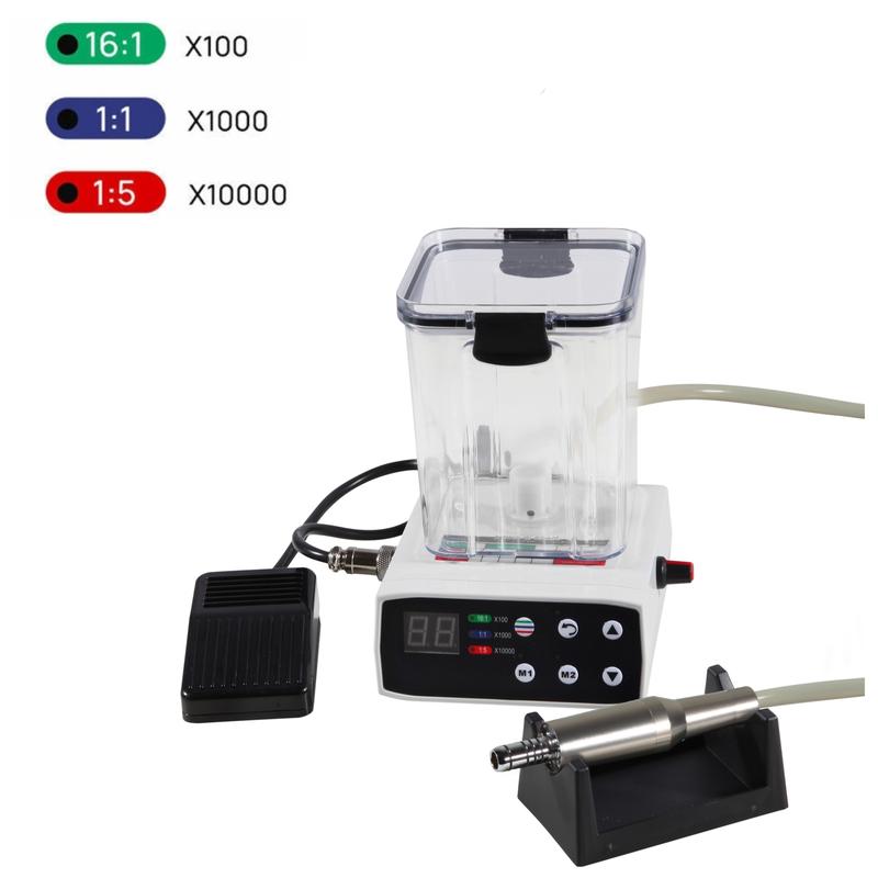 Автономный электрический бесщеточный микромотор с подсветкой и водой. Для угловых, прямых наконечников. !Данный микромотор может работать без подключения к стоматологической установке. Технические характеристики: Диапазон скоростей: 1:1: 1000-40000об/мин (терапия, ортопедия) 1:5: 5000-200000об/мин (терапия, ортопедия) 16:1: 125-2500об/мин (эндодонтия, имплантология) LED: более 25000LUX Выходной крутящий момент: 3.5N.cm Автономная подача воды Управление с педали или кнопки.