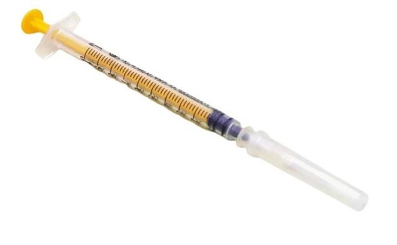 Данный шприц предназначен для выполнения инъекций малых объемов лекарственных средств. Особенности - Двуслойный уплотнитель поршня обеспечивает полную герметичность шприца. - Специальный термопластичный безлатексный материал уплотнителя позволяет перемещать поршень точно. - Удобные упоры для пальцев на цилиндре и на поршне способствуют точному введению препарата. - Практически прозрачный цилиндр позволяет надежно контролировать содержимое шприца. Срок годности 5 лет. Характеристики - Игла: съемная - Размер иглы: 0,30 х 13 мм = 30 G - Маркировка шкалы: U-100 (100 единиц инсулина в одном мл) - Шаг шкалы: две единицы - Мертвое пространство: 0,1 мл - Строение: трехкомпонентный - Положение наконечника-конуса: концентрическое (конус в центре цилиндра)
