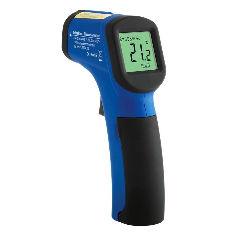 С помощью инфракрасного термометра можно измерить температуру поверхностей быстро и легко, не касаясь их. Просто направьте точку лазерного указателя термометра на объект измерения, нажмите на кнопку и в секунду на дисплее термометра отобразится значение температуры. Встроенный лазерный указатель поможет вам точно навести термометр на место измерения. Автоматическая температура отображается на дисплее с тыльной подсветкой. Применение инфракрасных термометров разнообразно. Вы можете использовать его для контроля систем кондиционирования воздуха и отопления, обнаружить места сквозняков в окнах или проверить тормозную систему в автомобиле. Также можно проверить температуру детского питания, напитков, воды для купания, масла для приготовления пищи, джема или горячего шоколада. Идеально подходит для пищевых продуктов, в соответствии с HACCP. В качестве прибора работает. Каждый предмет или другой объект излучает инфракрасную энергию. Оптика и детектор данного прибора измеряют инфракрасную энергию и переводят эту информацию в цифровые данные, отображаемые на дисплее. ФУНКЦИИ: - Для бесконтактного измерения температуры поверхности - Универсальный инструмент для дома, ремесла и хобби - С лазерным целеуказателем (полняет точную зону измерения) - Простота в использовании - Время отклика: 1 сек. - Функция удержания измеренного значения температуры - Подсветка - Функция автоматического отключения - Точность ±2 °C в диапазоне 0...+330 °C - Соотношение «Отстань измерения/размер пятна» 12: 1 - Идеально подходит для пищевых продуктов, согласно HACCP ОТДЕТ ЕВРОПЕЙСКОЙ СТАНДАРТУ HACCP: Измерительные приборы могут использоваться без ограничений для измерений температуры в контексте самостоятельного контроля в пищевой промышленности, благодаря своей конструкции, используемым материалам, процедуре измерения и точности измерения. ПРОЧНОСТЬ КАЧЕСТВА TFA: Продукция от TFA убеждает в функциональности и дизайне. QUALITY-PRODUCT by: TFA Dostmann GmbH & Co.KG Germany